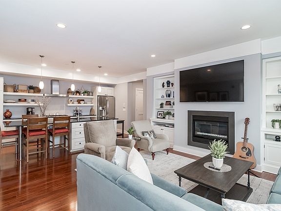 Sophisticated open-concept condo in downtown Natick! This 2 bedroom plus den/dining room unit is ideally located in the heart of Natick Center, near shops, restaurants, Morse library, commuter rail, TCAN, farmers market & more! This immaculate condo home features soaring ceilings, oversized windows, and upscale finishes. The contemporary layout includes a living room with a gas fireplace & custom built-ins and a spacious kitchen with a large island, perfect for entertaining. The primary suite has a huge walk-in closet and a luxurious en-suite bath with double vanity, a tiled shower, and a soaking tub. The second bedroom has ample closet space and access to a full bath. Home office space is also utilized in the home. Enjoy a bonus room for a 3rd bedroom, den or dining room, in-unit laundry, and a private balcony. Two deeded heated garage spaces and a basement storage room are included. The building offers a fitness studio, elevators, and allows pets. Not to be missed!