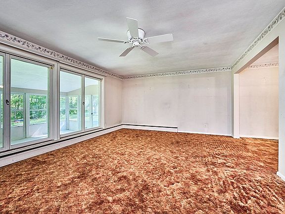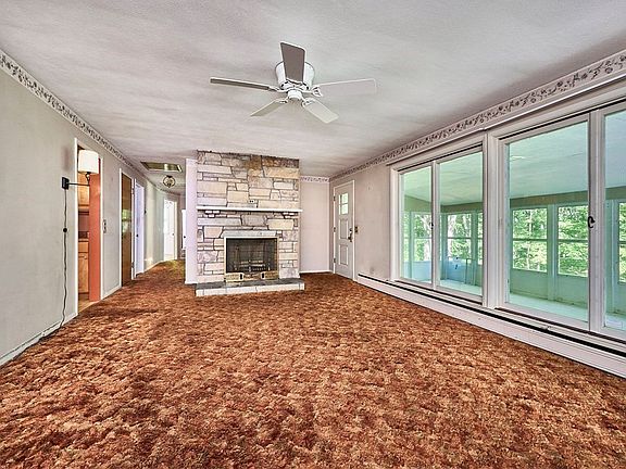 Highest & best offers due Wednesday at 12pm. Large mid-century ranch in unique country setting perched on Mt. Tom with a variety of trail systems nearby and easy access to Easthampton and the highway. The home features hardwood floors, including under wall-to-wall carpets, oversize picture windows, and a 2-car garage. A big 3-season porch overlooking the sprawling front yard leads to the spacious L-shaped living room and dining room with stone fireplace. The adjacent kitchen has maple cabinets and retains a beautiful antique stove, double ovens, and stainless-steel sink. Down the hall are 3 large bedrooms all with ample closets and hardwood floors, and a spacious full bath. The main level has great storage and closet space, as well as a mudroom/ porch off the garage. Even more room can be found in the finished lower level. A lovely setting for this large home in need of a little TLC to be brought back to its former glory.