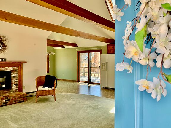 Summer fun awaits in this year round home with its spacious open floor plan and dramatic, beamed-cathedral ceiling. The living room includes a gas fireplace and an open staircase leading to the private primary bedroom en suite. The large dining area opens onto the full deck that includes a new outdoor shower and plenty of room for enjoying the outdoors and pretty wooded lot. Or take advantage of the huge fully finished lower level. There is plenty of room for several different living areas - a home theater, a gym, and a cozy living space around the gas stove would all fit! With the National Seashore Visitor Center less than a mile away, this location is convenient to beaches, trails and all that Eastham has to offer!