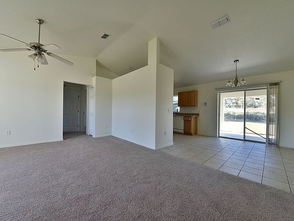 Vaulted ceiling in main living area; Wood kitchen cabinets; Indoor laundry room; Front overlooks large retention/open space