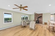 Updated kitchenRecessed lightingVibrant fall foliageSitting areaWall of windowsHot tubFenced level backyard