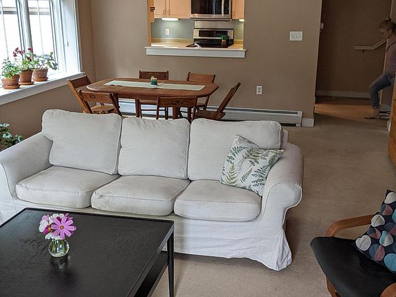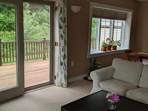 Well-established and -maintained Springbrook Hill Condominium complex offers a comfortable and sensible residential setting within one mile of downtown. This Townhouse end-unit faces South and West, and enjoys generous light all day long. Park your car in the 2-car garage, walk into foyer, which also has its formal entry-door, and then upstairs to main floor with open-floor plan Dining and Living room. a galley Kitchen, and Bedroom and Bath. Sliding glass door opens up to a freshly sanded mahogany deck measuring 11x29 that provides privacy and back-yard space. Walk up to third floor with 2 bedrooms and full bath, and laundry, and storage. Springbrook Hill maintains all the grounds, but some individual gardening is allowed for added touch; #20-A has a strawberry patch! Many recent updates include Boiler, Roof, Appliances (ASKO Washer/Dryer 2021), custom-made Cellular window-shades for all windows. The Association provides Fire suppression service annually for built-in sprinkler system. Pedestrian-friendly complex, with access to Clubhouse, Tennis courts, and Playground, and even some raised garden beds for intrepid gardeners.