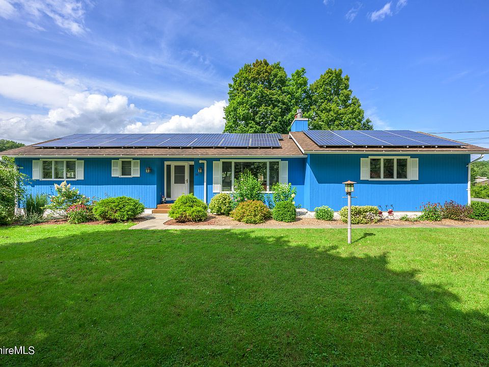 Enjoy one level living in this comfortable West Stockbridge ranch. Open floor plan with the kitchen as the focal point. Large living room with fireplace and dining area with sliding doors to a four season sun room. Also on the main level is the primary ensuite bedroom (with renovated bathroom), a guest room and a renovated full bathroom. Many options for the lower level which has a private entrance and half bathroom, including home occupation, overflow room for family & friends, hang out space for teens, or in-law suite. Large attached garage with workbench and fenced yard with utility shed and blueberry bushes. Walk to the library and town center.. Ductless mini split units for a/c and heat