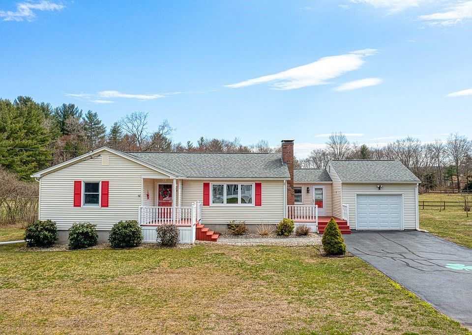 ABSOLUTLY PICTURE PERFECT ONE LEVEL LIVING! This home features a renovated eat-in kitchen with granite countertops, tile backsplash, cherry cabinets and Pergo flooring; Spacious living room with fireplace and pellet stove(2011); Modern bathroom with newer tub, ceramic tile flooring and tasteful fixtures; Gorgeous hardwoods throughout living and bedrooms; Sweet all season sunporch leads to oversized attached garage with newer opener and door (2020); Double wide driveway; Trex deck overlooks the just shy of 1/2 acre gorgeous lot; Additional updates and upgrades include-Heating (2020), CENTRAL AIR, Architectural shingled roof (2015), 200 amp circuit breaker panel (2020), Oil tank (2019), Replacement windows, Gutters & storm doors (2017) AND MUCH MORE!