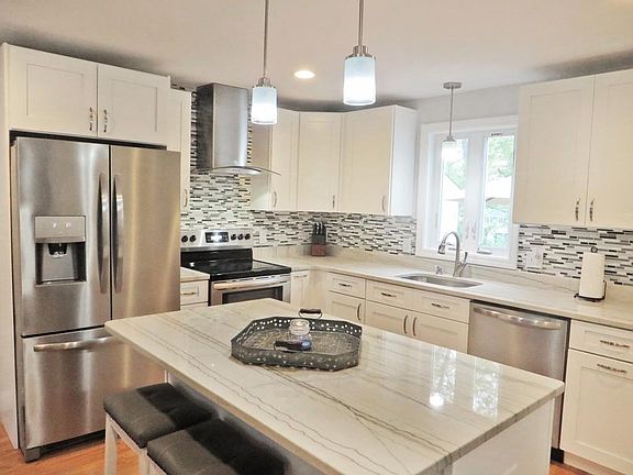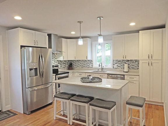 YOU WILL NOT FIND ANOTHER LIKE THIS ONE! Stylish design offers beauty at a price you can afford in this beautifully remodeled 3 bedroom, 1 3/4 bath Cape located in a great neighborhood. Gorgeous shaker kitchen, center island, SS appliances, recessed/pendant lighting, topped with white macaubas quartize counters, open floor concept, hardwood flooring, 1 flr bedroom and ship lap accent wall in fireplaced living room, open 2nd flr staircase leads to 2 bedrooms, 3/4 bath with stone shower. Outdoor patio great for those entertaining summer days! Large oversize wooded lot. Hurry a home of this quality and location will not last. Showings begin with OPEN HOUSE on Thursday, May 24th from 5.00 -7:00PM