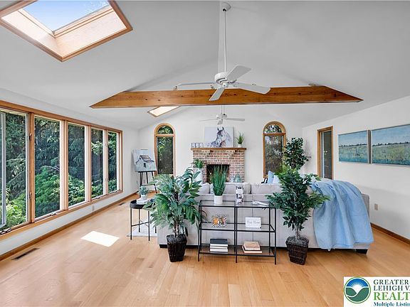 - Description: Spacious family room featuring vaulted ceilings, skylights, and a cozy wood-burning fireplace—flooded with natural light from oversized windows.