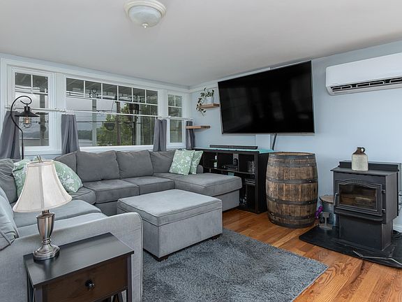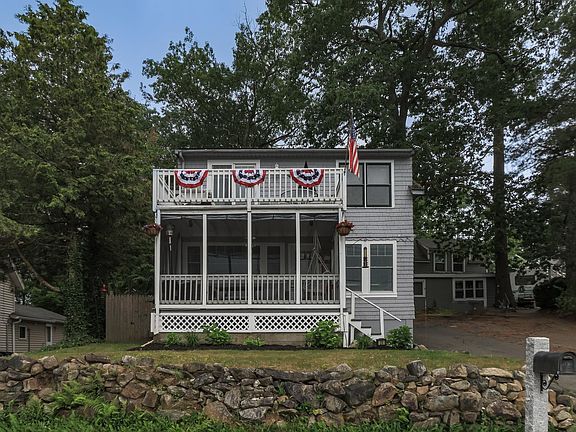 Big Island Pond Water View - Easy lake access out your front door and established private boat mooring! Enjoy the convenience of the private neighborhood sandy beach and year round lake activities. Short distance to conservation land(walking trails)- major highways & shopping. Great place to settle in and enjoy the lake lifestyle! Gorgeous view of Big Island Pond from this cape style home offering living area with a picture window to soak up the view of the water. Living room is accented by wood floors and has a pellet stove - living room has a door leading to the outside screen porch where you can entertain & share meals with an amazing view! Great updated working bright tiled kitchen with a modern feel and granite counters. 3 bedrooms up with the primary bedroom with a view and a sliding glass door leading to a private deck to enjoy beautiful sunsets. Recently remodeled tiled bath with walk in shower. Outside shed with garage door. New Pella windows on first floor and new slider in primary bedroom. Private sandy neighborhood beach across street. Boat mooring. Convenient location!