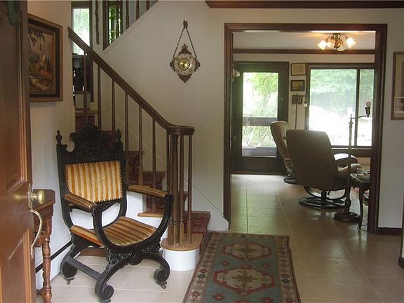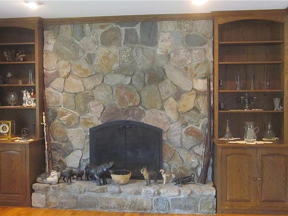 Welcome to this large split level home located on a tree lined dead end street. The spacious Family Room features a brick fireplace with raised hearth (TV above stays) while the Living Room has a stone fireplace surrounded by custom built-ins and crown moldings. Finished wood floors on second and third levels. Formal Dining room with wall of windows opens to deck. Deck overlooks large private yard. Eat-in-Kitchen with granite counters and abundant cabinets. ( All appliances as-is) Generous size bedrooms, Master Bedroom has full bath and custom closet built-ins (TV stays). Second bedroom with built-in student desk and cabinets. Fourth bedroom on first floor and powder room. Finished Basement recently professionally waterproofed (with permits). All new walls, freshly painted & new carpet (great play area) Large yard with patio & small fish pond. Convenient to NYC train, downtown shops and restaurants. Two blocks to Metuchen High School