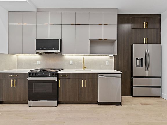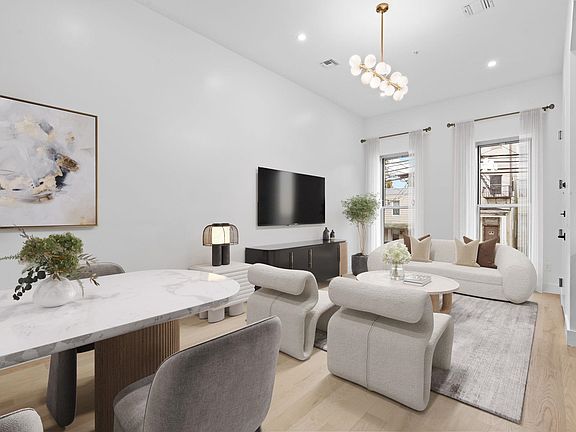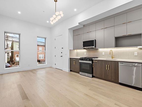 Beautifully gut renovated condo in the heart of McGinley Square! This stunning brand new home boasts three bedrooms offering flexibility for your lifestyle needs. Step inside and be wowed by the soaring 14 ft ceilings and thoughtful design, showcasing a blend of style and functionality. The open-concept living area features stunning hardwood white oak floors that flow seamlessly throughout the space. The kitchen is a chef's dream, complete with sleek quartz countertops, custom two-toned cabinetry with gold channels and Samsung appliances, including an integrated dishwasher for a seamless look. Bathrooms are complete with sleek tiles, soaking tub and enclosed glass shower. Embrace the outdoors on your private terrace off the primary bedroom perfect for morning coffee or evening cocktails. Comfort is key with central air conditioning, in-home laundry and recessed lighting throughout, creating a welcoming ambiance in every room. The attention to detail in this renovation is evident in the custom lighting fixtures that add a touch of sophistication. This vibrant neighborhood is booming with new restaurants and cafes such as Krewe, Marty's, Ita, Cafe Alyce, La Brujeria and Snapdragon Cafe, local bars, farmers markets and ample green spaces including Liberty State Park, Lincoln Park and the new Fairmount Park directly on your corner making it a great place to live, work & play. Enjoy an easy commute to NYC by being only .9 miles to the JSQ PATH or catch one of many frequent buses on the corner. With its quality build, modern amenities, and prime location, it's the perfect place to write your next chapter. Don't miss this opportunity to make this home your own!