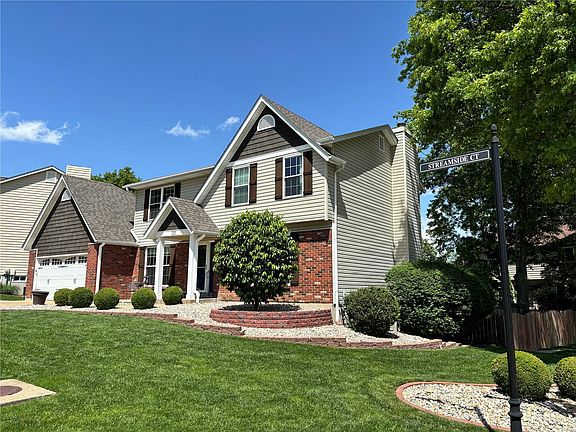 Move-in-ready, custom home waiting for you to make it your own. Wood floors throughout most of the 1st floor, great room with vaulted ceilings, gas fireplace and opens to the vinyl deck. Additional family room with a wood fireplace. Separate office with glass French doors. Kitchen boast white cabinets with granite counter tops, stainless appliances. Master bedroom suit with large walk-in closet and custom built shelving. Finished walk-out basement with addition bedroom full bath, rec area that includes a secret hideout behind the bookcase and full gym. Enjoy the outdoors on the vinyl deck or under the deck with water proof roofing, play basketball on backyard court or enjoy a ride on the zip line. New roof, updated HVAC system and in-ground irrigation system.