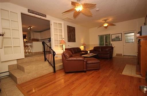 This home feels like vacation! Remodeled 3 BR, 2 BTH ranch w/open floor plan, private deck & mountain view. Everything updated w/additional finished space in lower level. Large sunken living room w/gas fireplace opens w/French doors to spacious & cheerfully updated kitchen. The slider from kitchen provides exterior access to unique outdoor living space - a sweet & perfect deck for warm weather dining & entertaining w/wide range mountain view. All floors are tile & wood. The family room off the kitchen could function as a dining room w/its large picture window. Two bedrooms & a full bath on first level while lower levels offers tiled master suite w/dressing room, laundry room & full bath. There is an additional deck in the backyard nestled w/an outline of woods. Very special renovated home!