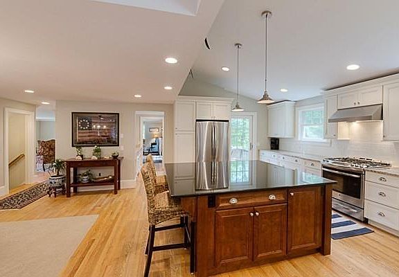 Welcome to desirable Fox Hill and this fully updated colonial situated at the end of a cul de sac on a private lot abutting acres of wooded common land. This delightful 12 room home has 2 kitchens, 5 bedrooms & 4.5 baths. It was transformed w/ a major addition & renovation project in 2012/13 which included the renovation of all the baths, a new main kitchen, new family room, a new master bedroom w/ two walk-in closets, a new scrumptious master bath and new garage with bonus space above. The chef's kitchen is anchored by a large island with Marvel wine fridge. Tons of character with loads of built-ins, substantial trim package w/ crown moldings throughout. Butler pantry w/ Sub-Zero fridge, Plain & Fancy cabinets & dishwasher. In-law potential w/ finished walk-out lower level which has a family room, a kitchen, full bath & additional laundry area. Economical gas heat w/ six zones, 2 decks, 3 masonry fireplaces and walk-up attic for additional play area or the ultimate teen suite.