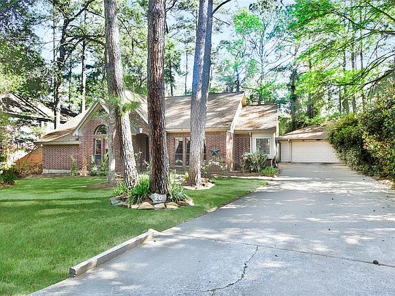 This fabulous Glenwood home which is the "Chesapeake" floor plan is located on a cul-de-sac home site in Panther Creek. The bike path is adjacent to the home giving you more space between you and one neighbor. Flexible plan w/3 spacious bedrooms + study with full closet. Job-built cabinetry throughout, and block paneling in family room. Cozy family room w/gas log fireplace. This home can be amazing with a few updates, and is in good condition. Use your imagination. The bones are great. All bedrooms have nice-sized closets. This home is zoned to the popular Woodlands High School. Back yard has ample room for a pool. Seller wants to sell "as is".
