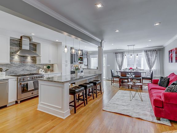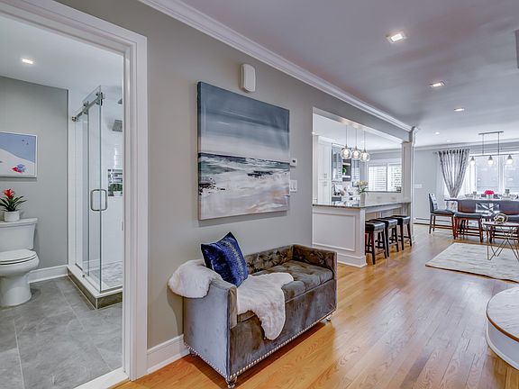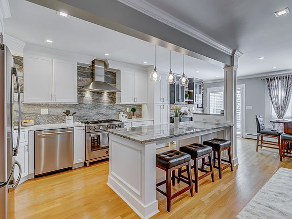 Stunning 2 Fam Brick w 4 levels of living in Bustling Bayonne but Quiet Coveted Sunset Ave Community. Top Unit Duplex is a sophisticated and meticulously crafted bright living space with recent renovation highlighting new electrical/plumbing/AC systems, generous transitional style wood trim, 3 baths, sprawling entertaining space, exposed brick wet bar, fireplace, high end bath and kitchen finishes w/ large island, granite backsplash, Hunter Douglass Treatments & access to raised deck and patio/backyard. 1st Floor unit is a vacant well maintained 2 bedroom for income generation potential. Additional 650 sf of Finished Basement living area which feels more ground level and equipped with pantry, full bath, recreation room, ceramic tile and separate front entrance provide flexible lifestyle options. New Roof, New Electric Service with New Subpanels. Parking for 2 cars include driveway and garage.