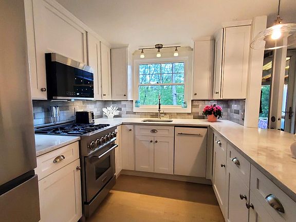 You will love this stunning updated Harwich home with a garage, full concrete basement, shed, brick patio, deck & outdoor shower!! The inviting screened-in porch, right off from the new kitchen, dining area & deck, may become your favorite spot to entertain or just enjoy the peaceful, private backyard setting. The backyard property line abuts greenspace & can not be developed. The gas fireplace, split a/c, LVP flooring, recessed lights & new kitchen appliances, quartz countertop & Shaker cabinets all enhance this sunny, pristine home. The baths are completely updated including marble floors & quartzite counters. The two bedroom, two bath ranch rests on a gentle knoll on a dead end street. Just around the corner is the popular Thompson Field trails & property is less than a mile to Red River Beach! Bike or take a 2 minute drive south to Harwich Port Village with harbors, glorious ocean beaches, shops, restaurants & art galleries. Up the road is historic Harwich Center which offers access to bike path, golf, tennis, baseball, Community Center, library, museum, fairs & musical events.!! Title 5/ Septic has passed-