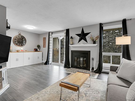 Welcome to this lovely updated, bright two-level condo which offers a spacious dining and living area complete with a balcony and a cozy wood-burning fireplace for those winter evenings. The well-sized kitchen provides ample storage, the main level also includes in-unit laundry, and a convenient 2-piece powder room. The upper level features two generous bedrooms with plenty of closet space, a 5-piece bathroom with cheater en-suite access, and an additional storage room. Situated in a quiet neighbourhood, this home is within easy walking distance of the Walter Baker Sports and Recreation Centre, shopping, OC Transpo, schools, and parks, everything you need is close at hand! Parking spot #B18 is conveniently located right at your entrance. 24 Hour Irrevocable on all offer as per form 244