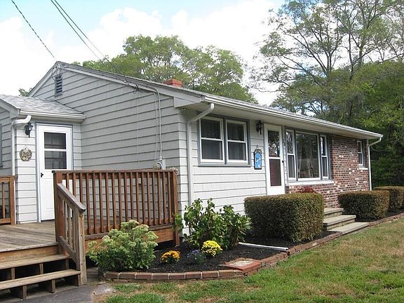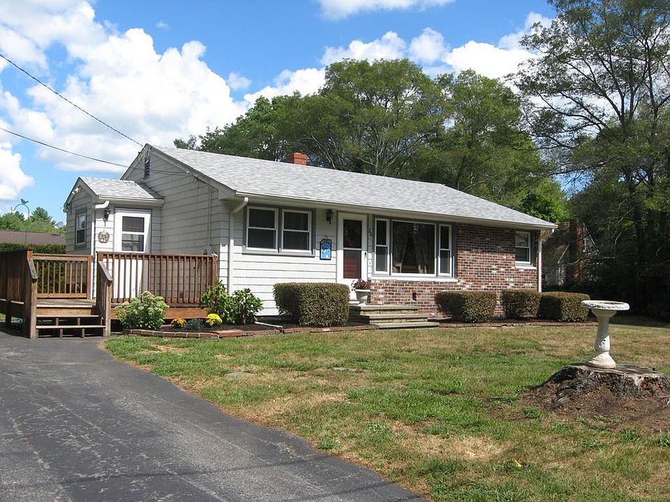 Situated on a quarter acre corner lot, this adorable 2 bedroom ranch is move in ready complete with new architectural roof, newer Harvey windows, new carpeting, and nice open living & dining area. This home is in immaculate condition and perfect for 1st time buyers or those wanting to downsize. The first level has 2 bedrooms and a recently updated bathroom; basement has 2 finished heated rooms. Enjoy the beautiful yard with deck, outside fireplace and plenty of room for entertaining! Septic plans are underway and will be installed prior to closing. Great location conveniently located near Macomber School, and easy access to Route 6 & 195. Don't miss out on this one!