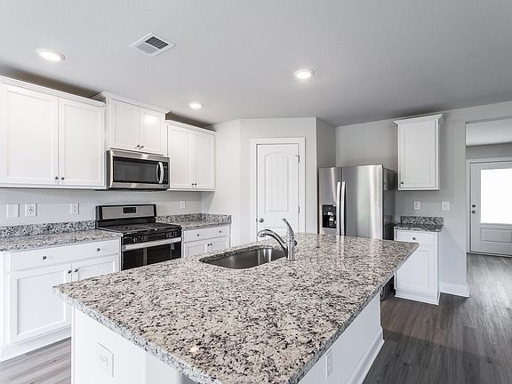 This 5-bed, 3-bath home is both functional and stylish. The incredible kitchen overlooks the breakfast area and the living room. The kitchen features stainless steel appliances, 36'' upper cabinets with crown molding and granite countertops. With a large island, this kitchen has tons of counter space plus a large walk-in pantry. Around the corner, you will find the laundry room with easy access to the garage. This two-story home offers plenty of space to live life to the fullest!