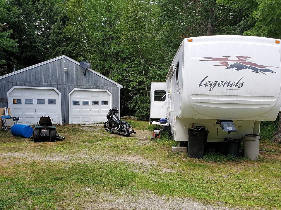 Amherst: 20 Tannery Loop Road, 8 acres, wooded & open, drilled well, septic, driveway, 20x32 2 car garage, 2007 Pilgim 5th Wheel 35', very quiet town maintained road, fiber optic internet, $1100.00 taxes, good road frontage, close to Union River, snowmobilig & ATVing right from your door, or build your own home, many possibilities, KRE 4153, $69,500.