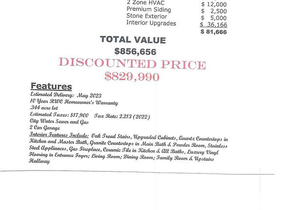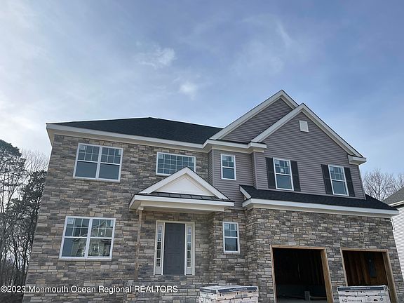 Beautiful new construction on a lovely private circle at Hawke Pointe in Howell Township! This 2703 sq ft colonial is under construction and ready for occupancy approx. May 2023. Many upgrades included! This home sits on a beautiful lot and has an upgraded elevation w/ premium siding & stone exterior and a walkout basement! Spacious kitchen with upgraded cabinets, stainless appliances, quartz counters, center island and tile floor. Huge master bedroom with 2 walk in closets and full master bath with soaking tub. Luxury vinyl flooring in foyer, LR, DR and family room. Gas fireplace included with marble surround in the family room. Oak Tread stairs, 2 car garage, 2nd floor laundry room, city water and sewer and gas heat are some of the special features of this lovely home! Quick delivery
