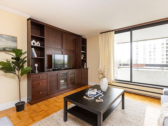 With an enviable location in the coveted the Golden Triangle, this 2 bed 2 bath condo offers unparalleled access to everything the vibrant downtown core has to offer. Start your day enjoying the stunning cityscapes from one of the two sweeping balconies, both with a serene view of the canal. The natural flow between the large dining room and expansive living room creates an ideal space for avid entertainers and homebodies alike. The modern kitchen has stainless steel appliances, quartz counters and an eat-in counter facing a large picture window. Unwind and relax in the luxury primary suite, easily able to accommodate a king bed. A second full bath and bedroom are ready to host visiting friends and family. The building boasts an impressive array of amenities designed for your lifestyle and comfort, including an indoor pool, fitness centre and rooftop terrace. This building is proudly accessible, with no stairs into the lobby and elevators to every floor. Condo fees $1400.59/mo.