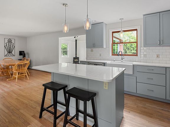 This charming saltbox is situated at the end of a cul-de-sac in a highly desirable Essex neighborhood. The level fenced backyard is perfect for playing games, gardening, or just relaxing. This property abuts protected land with nature trails that lead right to the elementary school. Enjoy the open floor plan with hardwood flooring throughout the first floor, a beautifully updated kitchen, bright freshly painted family room, spacious mudroom, and large back deck perfect for summer gatherings. And when the weather cools down, cozy up to the wood stove or gas stove in each living space. Upstairs there are 3 bedrooms, a bonus room, and office nook providing options for working from home. The spacious primary suite has a vaulted ceilings, en suite bath, and a walk-in closet. The basement is partially finished and waiting for the final touches to be completed. The location could not be more convenient – 5 minutes to the grocery store and “Essex Experience” offering great restaurants and summer concerts. If you need to venture further there is easy access to Burlington, I-89 in Richmond, and Mount Mansfield State Park. Open house Saturday June 1, 12-2pm.