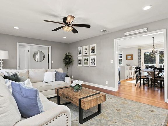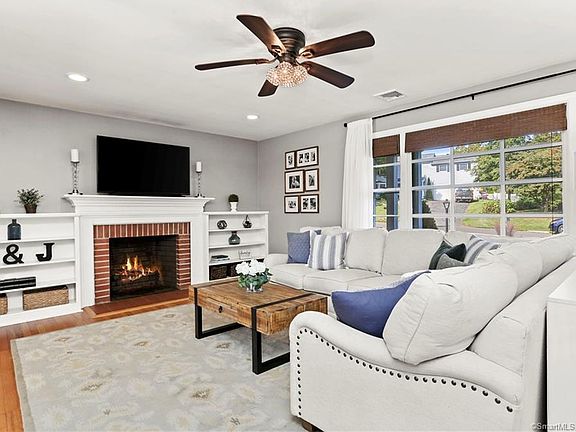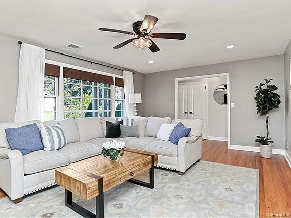 Beautifully updated ranch with a modern and charming style in a quiet neighborhood convenient to the Merritt Parkway, mall, restaurants & the Tait Trail. Living room with wood burning fireplace, built-ins and recessed lighting. New kitchen with quartz countertops and stainless steel appliances. New central air and energy star rated vinyl windows. The finished walk-out lower level is a sweet surprise providing an additional 600 square feet of living space. The tiled laundry room and the utility room offer ample storage.. The front porch adds to the great curb appeal and there is a large deck overlooking a well maintained and fully fenced in flat backyard. This well kept home is ready for its next owner! Agent is owner.