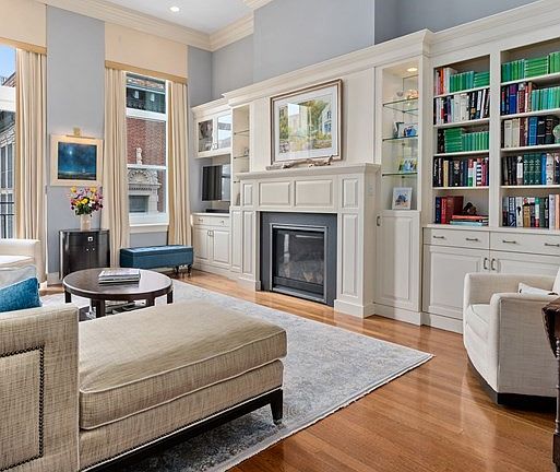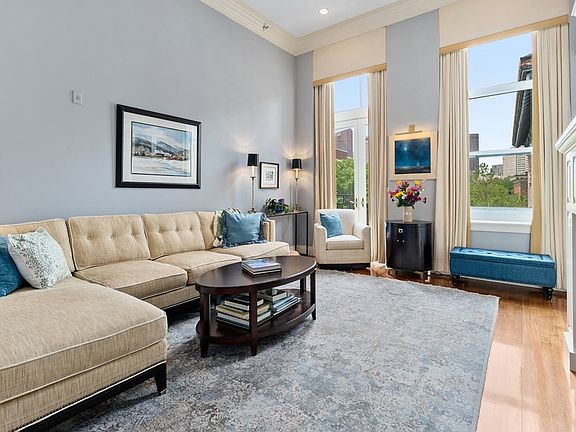Highlights of this renovated Columbus Ct. residence include its corner location, 13’ ceilings, 10’ windows and Juliette balconies with outstanding views, custom built-ins and hardwood floors throughout. The home provides an expansive living room with gas fireplace, dining room, kitchen with quality appliance package, principal bedroom with ensuite bathroom and generous closet space, and guest bedroom (home office) with built-in Murphy bed and ensuite bathroom. The home is completed by one parking space in the gated courtyard and one of the largest storage rooms. Amenities include a fabulous common roof deck, extremely attentive superintendent, elevator, and bicycle storage. The building’s location is at the heart of one of the city’s most vibrant neighborhoods with many restaurants and specialty stores. The North End offers ease of access to all the city has to offer and is near its public transportation, highways and airport. Preferred closing date: 19th or 20th September, 2022.