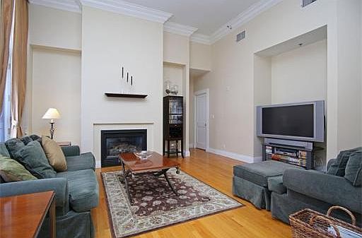 Gorgeous two bedroom two bath unit at Columbus Court which was built as a schoolhouse in 1903 and converted into luxury condominiums. This lovely home features 13 ft. ceilings, crown moldings, over-sized windows, hardwood floors, separate dining area, and gas fireplace. The large master bedroom has ensuite bathroom. Other amenities include in unit washer/dryer, separate storage closet, and one outdoor parking space.. There is a large common roof deck with city views. Part-time doorman.