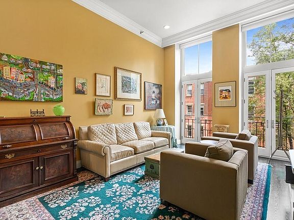 Impeccably renovated two bedroom, two bath home located at the prestigious Columbus Court condominium. This stunning south-facing home features an assigned parking space, soaring 13+ ft ceilings and custom craftsmanship. The home has been meticulously cared for and features two large bedrooms with two full baths. The large entertaining sized living room has custom built-ins, floor to ceiling windows and two Juliette balconies. Other highlights include in unit washer/dryer, central air conditioning and gas cooking. This property is on the second floor - access by elevator or comfortable stairs from ground level entry. Columbus Court features on-site parking, concierge, elevator and an expansive roof deck with breathtaking views of the North End. Located in the heart of the North End this dynamic location is steps to the Waterfront, Financial District and all major points of transportation.