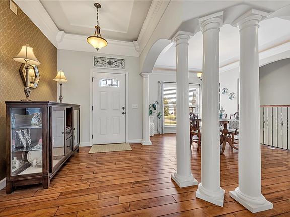 Experience Luxury Living at 20 Timber Trace Ct, Wentzville! Prepare to be captivated by this stunning 4-bedroom, 3-bathroom home nestled on a private cul-de-sac in the desirable Timber Trace community of Wentzville. Boasting over 3000 square feet of total living space, this residence offers an unparalleled blend of elegance and comfort. The hardwood floors flowing throughout the main living areas create a warm and inviting ambiance. "Soaring 9 and 10-foot ceilings, highlighted by a beautifully lit tray ceiling that adds architectural drama.  The finished basement expands the living space with a fantastic rec room, a fourth bedroom and a full bath, while ample storage space ensures everything has its place. A fully fenced yard offers privacy.  Enjoy summer barbecues on the expansive deck or unwind on the patio. The private cul-de-sac location adds an extra layer of tranquility, making this home a true sanctuary. Don't miss the opportunity to own this exceptional Wentzville home!