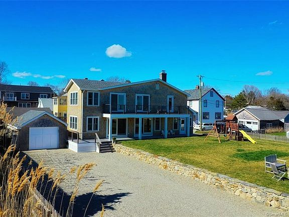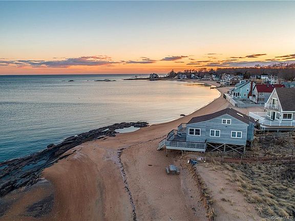 This well-appointed and relaxing retreat with exquisite views of Long Island Sound is only steps from private, never crowded association beach in the highly desirable section of Madison. This like NEW 4 bed, 3 bath gem was fully renovated in 2016 and generously expanded with luxe finishes that WOW. Floor-to-ceiling sliding doors, double-height windows, and balconies allow for top-to-bottom, light-filled views of Long Island Sound. This residence features a 5-star kitchen with a double island, Carrara marble countertops & backsplash, stainless Viking appliances and dark Oak floors stained with Jacobean that accent the bright white shaker style cabinets. A thoughtful and dramatic floor plan designed for casual entertaining includes a living room with a glass staircase and oversized fireplace that lead to an expansive outdoor balcony with Ipe decking & stainless-steel cable railing system overlooking an elevated large grassy-flat yard with fire pit. Additional upgrades include 3 full custom bathrooms with radiant heated floors, marble showers, and floors with custom vanities; large master suite with walk-in closet, glass sliders, double height windows, and balcony overlooking the beach. Hot/cold fully enclosed outdoor shower. Hurricane rated windows, doors, roof. Three-zone HVAC. Full home maintenance-free water filtration system and a detached garage for all your toys.