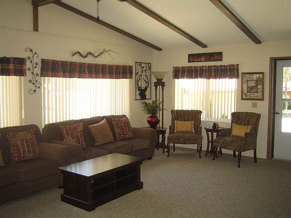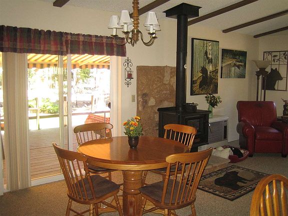 You won't find a home in better condition. Immaculate condition and only used part time. Many new features including: Awning over deck, windows, exterior trim, interior and exterior paint, berber carpet and laminate floors, ceiling fan, window treatments, kitchen range, water heater, plumbing fixtures and outdoor shed. Many other complementary fine features: refurbished deck, window air conditioning and 3 sources of heat; wood stove, kerosene heater and electric central. And you can't miss the very entertaining backyard with large deck with retractable awning, horseshoe pit and easy care landscaping. There are automatic sprinklers for both front and backyards.