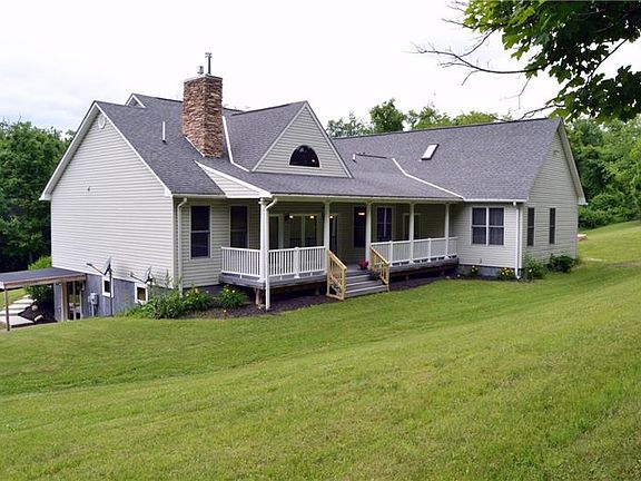 Beautiful private cape cod on 4.93 wooden acres features a 1st floor master bedroom suite with spa like bath and first floor laundry for easy one level living. Living room has cathedral ceiling with floor to ceiling stone propane fireplace. Eat in kitchen with center island has seating for 6 and an additional breakfast nook. All bathrooms have granite counter tops. 9ft ceilings throughout main floor. Enormous finished walk out lower level with second kitchen & 2 additional bedrooms with full bath. Covered front and back porches with trex decking. Perfect home to host family gatherings. This is a MUST SEE!!!