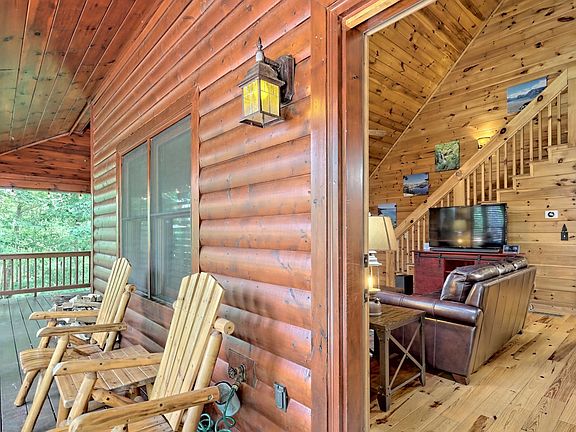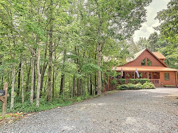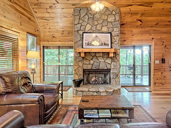 WONDERFUL Mountain View CABIN LESS THAN 5 MILES FROM DOWNTOWN ELLIJAY! Recently stained Log-sided with metal roof! Year round mountain views (can be improved with some tree trimming! 3 acres. Wrap around porch with outdoor fireplace facing the mountain view! Great room with cathedral ceilings and floor to ceiling rock fireplace! 2BR/2.5 BA (2 master suites) and large loft area! Full unfinished basement with finished office area and plenty of room that can be easily and finished for future expansion! Beautiful minimal maintenance landscaping! Plenty of parking with two driveways! Located in a small log home community with all paved roads and 3 acre minimum lots with a community pool, clubhouse and less than 5 miles from town!