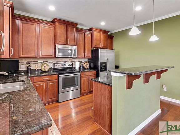 This stunning 5 bed 3 bath home is located just minutes from Pooler's most popular restaurants, shopping, and entertainment! Beautiful trim package and arched doorways can be found throughout the home's main living areas including a spacious living room, large formal dining room, and kitchen complete with gorgeous granite counter tops, stainless steel appliances and 42 inch cabinets offer tons of storage. Guest Bedroom and full bath on the first floor perfect space for an in law suite. Located upstairs, the over-sized master suite boasts a tray ceiling and luxury bath complete with double vanity, garden tub, and separate shower plus his and hers walk in closets. 3 additional large bedrooms all with walk in closet space located on the second floor plus large loft area!! Loft area makes for perfect second living room. Large fenced in back yard. Covered front porch plus 2 car garage! This home is a must see!