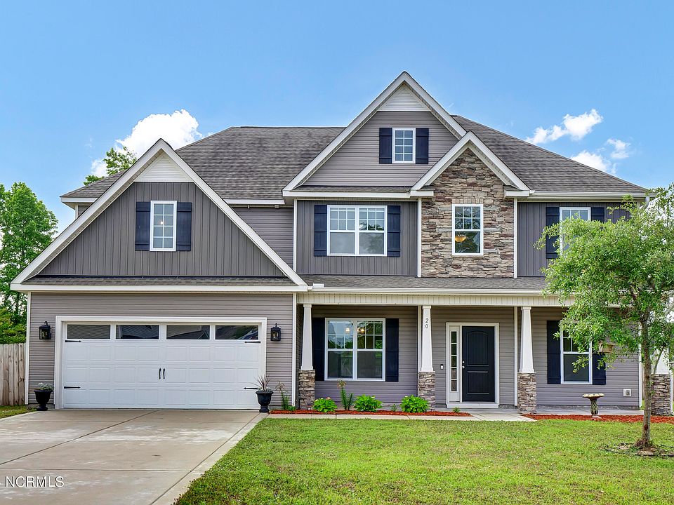 This move-in ready home is perfect for those looking for space and convenience. With four bedrooms and a bonus room, there is plenty of room for everyone. The master bedroom is located on the ground floor, providing easy access and privacy. The fenced-in backyard adds to the appeal of this home. As you enter, you will be impressed by the high ceilings and the abundance of natural light from the second-story windows. With over 3300 heated square feet, this home offers ample space for all your needs. The first floor master suite features two large walk-in closets with custom wood shelving, a double vanity, a soaking tub, a separate shower, and a private water closet. Upstairs, you will find three additional bedrooms, a jack-and-jill bathroom with a double vanity, another bathroom, and a spacious bonus room. But that's not all! This home also comes with extra storage, perfect for storing holiday decorations or any other items you need to put away. The kitchen boasts granite countertops, and the foyer, kitchen, and dining room feature beautiful hardwood flooring. On those chilly winter days, you can cozy up by the gas fireplace. If you enjoy spending time outdoors, you will love the covered back porch and the cozy firepit. This house offers a private setting while still being conveniently located near shopping, entertainment, and the Intracoastal Waterway. And the best part? There are no HOA fees! Don't miss out on this amazing home.