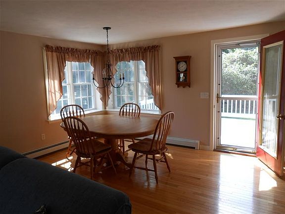 For more information on this property, contact William Raveis Real Estate, Mortgage & Insurance at 1-888-699-8876 or contact@raveis.com. East Falmouth, off Central Ave. Less than 2 miles to beautiful Menauhant Beach and Bourne's Pond; only .3 mile to neighborhood boat ramp on Eel Pond. Convenient to shopping ~ Contemporary Cape at end of quiet street with only 7 homes. Open floor plan has cathedral living room with skylights, corner gas fireplace, ceiling fan ~ spacious dining area at one end; both have oak flooring. Kitchen has boxed out triple window, making it more generous in size. First floor master bedroom with oak flooring, access to full bath ~ laundry/mudroom and two car garage with openers. Upstairs are two large carpeted bedrooms and second full bath. Half acre yard is nicely landscaped with mature shrubs for privacy, garden shed, irrigation. Expansive deck with access from dining area and mudroom; freshly painted, has retractable awning. Recent roof and painting; Title 5 in hand. Well maintained, easy to see, ready for new family to enjoy!