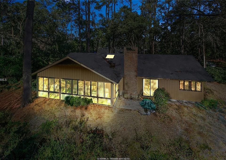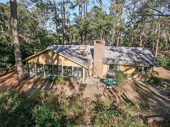 Location, Location, Location! Gorgeous Views over lagoon and fairway views. Set on the Side Cul De Sac near the end of Twin Pines Road and surrounded by Million Dollar Homes. Great Redo or make into a rental and watch the market climb while you work on plans for a new home. Close to all amenities and great bones. Professional Photos and Landscape work are underway. True Ranch style all on one level, 2 bedrooms, plus den, 2.5 baths, fireplaced living room with high ceilings, family room, den, plus large kitchen. 2 Car Garage. Sea Pines Country Club membership too!