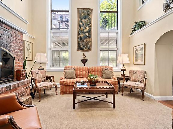Perfectly located in front of one of Union Park's gorgeous water fountains, this stunning 2 bedroom, 1 bath duplex home has a warm and inviting layout with 2 incredible outside spaces. There is a private entrance from the newly planted front garden which leads to a gracious entry foyer. On the upper level is the master bedroom with original woodwork and full bathroom. The living area for this home is split with a dining room and kitchen upstairs overlooking the 2 story living room. A deck off the kitchen provides nice entertaining space. On the lower level is a spacious living area with fireplace, 2nd bedroom (currently being used as an office) and a large walk in closet that could be turned into a 2nd bathroom if so desired. A private brick patio surrounded by mature plantings completes this one-of-a-kind residence which feels more like your own house having the 2 private entrances rather than a condo. One assigned parking space is included.
