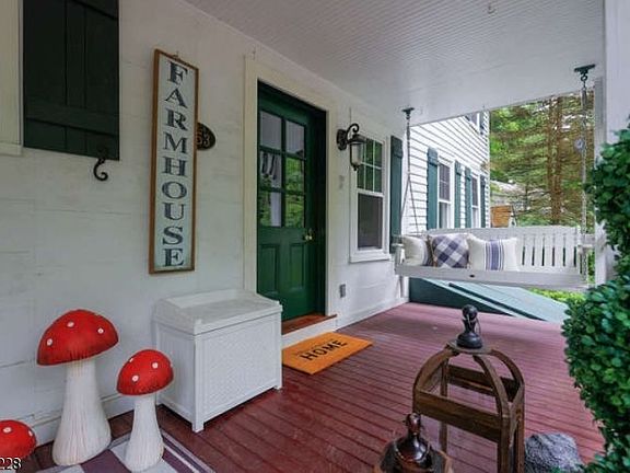 Wonderfully bucolic "Bank House", circe 1853, captures the beauty and allure of a bygone era but w all of today's modern conveniences. Storybook location within a stone's throw of a babbling brook and perched among magnificent glacial rock formations, this beautiful home borders 400 acres of preserved woodlands. 8 rooms, including 3 bedrooms, 2 full baths, attractive living room, spacious kitchen w newer appliances, dining area, cozy den, 1st fl master bedroom w separate sitting room, and delightful rocking chair front porch--this home has a comfortable, easy-living floor plan. Picturesque rural setting on .80 acres w level play areas plus the soothing sounds and tranquil views of a gently flowing brook. Wide gravel driveway w ample parking. Public water and sewer, plus gas heat. Top Mendham Twp schools!