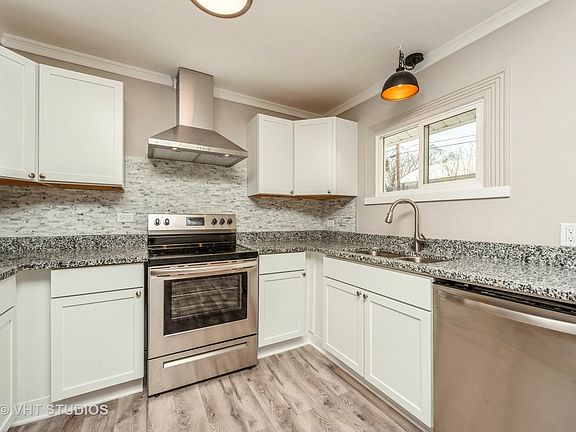 Complete rehab to this beautiful 3 bedroom 1 bath hillside ranch in Oakwood Hills! Property features brand new vinyl flooring and trim throughout. Remodeled kitchen w/brand new cabinetry, granite countertops, backsplash, and stainless appliances. Sliders lead to spacious fenced-in backyard. Remodeled bathroom w/tiled tub surround, new vanity and flooring. Remodeled laundry room, and canned lighting throughout home. Sliders off master lead to private deck. Huge patio over garage, perfect for entertaining. New laundry room w/new hot water heater, flooring, and access to back yard. New steps, railing and retaining walls. House freshly painted inside and out. 2 car garage w/new garage doors to be installed. New Roof 2017. Amazing location, right down the street from Silver Lake with swimming and boating access. Within minutes drive to Lions Park, Forest Preserves, shopping, restaurants, lakes, and so much more. Seller credit could be used toward 2-1 buy down. Don't miss this opportunity!