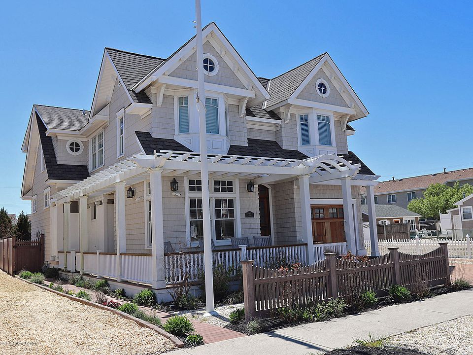 Absolutely spectacular beach block 5 bedroom, 4 bath house. No expense spared in the construction...quarter sawn oak floors throughout plus custom over-sized quarter sawn doors as well. Custom knotty cherrywood office, great room kitchen,dining, living combo with 12.5 foot ceilings. Beautiful master suite with a vaulted ceiling, two walk-in closets, make-up area, and bath with jetted tub, a oversized tiled shower. Attached garage, laundry room, trex decking front and rear, two instant-hot systems, solar panels with prepaid 13 year lease, backyard swim spa, two outdoors showers with dressing rooms and more in this fabulous shore house.