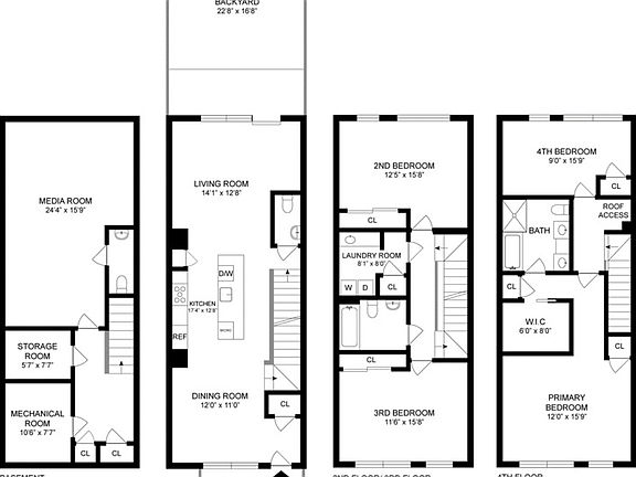 Newly constructed townhouse at Navy Green with beautiful private backyard! This modern townhouse with a spacious layout and soaring ceilings is over 3,000 square feet with four bedrooms, two full bathrooms and two half bathrooms. The first floor contains a large chef's kitchen featuring a large island topped with Frosty Carina Caesarstone, stainless steel appliances by Bertazzoni, Bosch, Liebherr and a Giagni faucet. The expansive living room opens directly onto the patio for seamless indoor/outdoor living. Beyond the patio, the private backyard is perfect for a summer BBQ and comes equipped with gas, electric, and water hookups. There is also a separate indoor dining area and powder room. On the second floor, you'll find two large bedrooms, a full bathroom, and a large laundry room. The third floor features an expansive master suite and fourth bedroom/home office. The en-suite five-fixture master bath has a soaking tub, double vanity with Corian sinks, glass shower with Grohe fixtures and radiant heated floors. The downstairs space has a huge media room, half bath and multiple walk-in closets. The townhouse is completed with 7" wide plank oak floors throughout, central AC, and an intercom system. Pets are welcome! Part of Navy Green, the townhouse has access to the development's community green. This 30,000 square foot park is just beyond your private backyard and consists of walkways, playgrounds and plenty of space for relaxing and taking in the view. Navy Green's immediate neighborhood traces its history back to the 17th century and includes a stunning mix of residential and industrial architecture. The area is a vibrant and eclectic mix of all things Brooklyn, from charming sidewalk cafes to beautiful parks and world-class cultural institutions. It's just a few blocks to Fort Greene Park. There are many fine restaurants lining both Myrtle and DeKalb Avenues. Across Flushing Ave lies the historic Brooklyn Navy Yard. Now a hub for innovation in industries including tech, film and even urban agriculture.