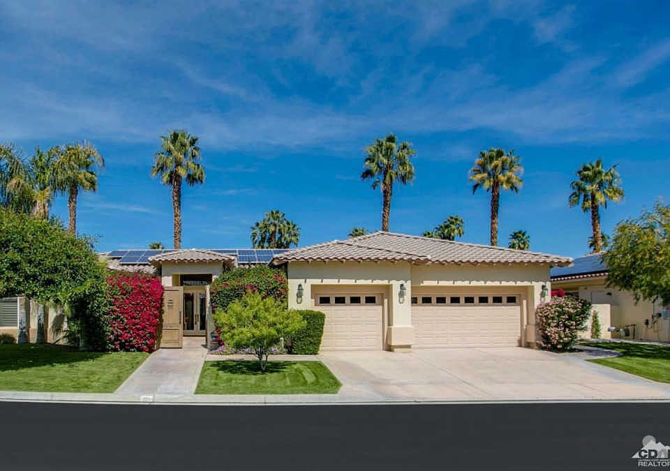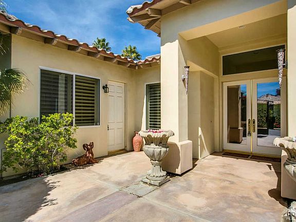 ATTENTION astute buyers...Welcome to VIENTO...a small, quaint, gated community of 26 homes located in the heart of Rancho Mirage. The spacious and inviting courtyard leads to the MAIN residence with includes 2 bedrooms 2.5 baths PLUS den/office with built-ins, BONUS: 1 bedroom, 1 bath CASITA, Upgrades are numerous...tile flooring and shutters throughout, formal dining room, double french doors in the living room, majestic marble fireplace, family room with stacked stone fireplace. Spacious kitchen offers granite counters, VIKING 6 burner cooktop and vent, double VIKING ovens, maple cabinetry . PRIVATE lushly landscaped backyard with POOL and SPA. Large fountain and covered patio area for outdoor dining. Some mountain VIEWS from the backyard. TRIPLE garage. Beautiful greenbelt area for playing and exercising your dog. VIENTO is a hidden JEWEL in Rancho Mirage close to Mission Hills CC, Tamarisk CC and Palm Valley School. NOTE: Solar is Financed...NOT LEASED...low payment.