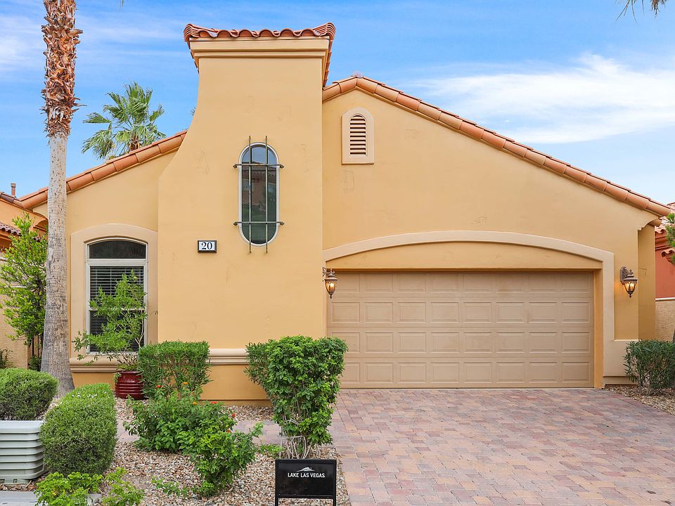 Impeccable single story home located in the prestigious Lake Las Vegas community. This grand estate features 3 bedrooms, 3.5 bathrooms, den, 2 car garage with 1,972 square feet of living space. Amazing curb appeal with a paved driveway, courtyard, mature palm trees, unique architecture design, finished with lush and desert landscaping. Welcome home to a wealth of upgrades such as crown molding throughout the home, gorgeous neutral colored tile, beautiful light fixtures, custom cabinetry and large windows with breathtaking views. Elegant open floor plan with a wonderful family room that has a stylish mantel surrounding the aesthetically pleasing fireplace, admirable french doors leading out to the backyard oasis. Gourmet kitchen has granite countertops, high-end stainless steel appliances including cook-top, built-in oven and microwave, and ample cabinet and counter space. Comfortable master bedroom with walk-in closet and French doors leading to the backyard oasis. Highly upgraded master bathroom with dual sinks, custom tiled deep roman tub, and separate walk-in shower. Spend your summer days enjoying this spectacular backyard with a golf course frontage, mountain view, sparkling pool, firepit, built-in BBQ island, and lovely covered patio. Contact us NOW for further details and viewing appointments. Zillow Inc. has a real estate license in this state.