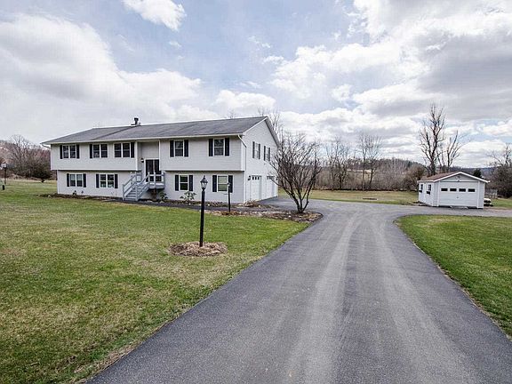 Upon entry you immediately recognize this is not your average raised ranch. The centered glass double front door and spacious entry set the tone for how special this home really is. A brand new custom designed and hand crafted kitchen with wood cabinetry, granite counter tops, subway tile backsplash, and an 80' x 32' black walnut island is open to a large dine-in area with views of pastoral farmland. Beautiful new rustic dark oak flooring accent the wood burning fieldstone fireplace in the living room. Multifaceted gathering and work areas include an 18x18' bonus room and first floor office or bedroom. Completely above grade is a potential walk-out mother-in law suite with living room, sewing room and full bath. The oversized garage is heated with a workshop area and separate 110 electric panel. Great shed for extra storage or yard equipment.