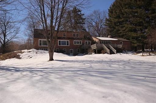 New England at it's BEST! 4 BR, 2 BTH Williamsburg Cape w/lovely setback from road on 4+ picturesque acres, NEW Weil-McClain 4 zone gas heating system, NEW Central AC, exceptionally sunny & bright LR w/picture windows & fireplace, NEW kitchen w/custom Maple cabinets, 1st flr laundry area w/ BOSCH washer/dryer, DR w/French doors & picture window overlooking lovely private yard w/ample room for gardening, hardwood flrs throughout, closets GALORE, enclosed screened porch & huge deck, 2 car garage, Rec room in basement w/fireplace. Town sewer. Plenty of space for your every need; a rare & unique find!