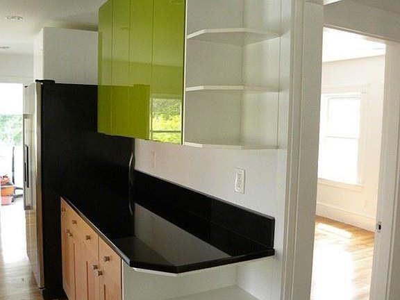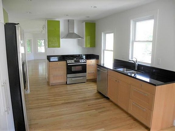 Condo quality! Located in the tree-lined Strawberry Hill neighborhood of Cambridge, this place has it all on 2 floors. 2nd floor has a gourmet eat-in kitchen with black granite, cherry cabs with green tinted glass doors, and stainless appliances; 1 fully renovated full bath; 1 massive living/dining room with 7 windows, 2 equally sized bedrooms, and a heated rear sun-porch, an enclosed 3 season front porch, all with gleaming hardwood floors. Third floor is a large suite with a modern bathroom with walk-in shower with skylight. Also in the 3rd fl suite are modern ceiling fans and a skylight that converts into a small balcony! European fixtures. No pets, please. Off street parking and laundry in unit are included. Available for 8/1 move-in. Showings begin 7/6.