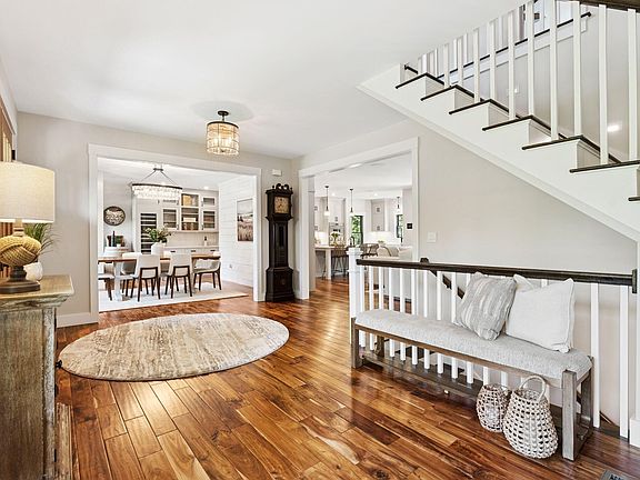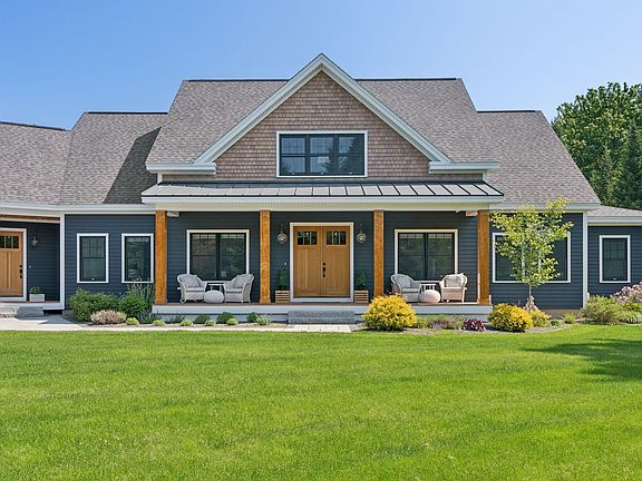 Spanning over 6,000 SF, this home features four/five bedrooms, four full baths, and two half baths. The interior is designed for both elegance and comfort, with hardwood and tile floors throughout. The living area is highlighted by a stunning stone fireplace and a wood stove insert, creating a warm and inviting atmosphere. The spacious 1st floor laundry room adds convenience, while two dedicated home offices—one on the main level and another above the garage with its own half bath and storage—provide the perfect spaces for work or study.